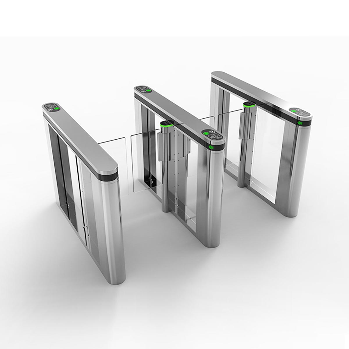 Swing Gate KSP1415 là dòng cửa phân làn tự động cao cấp với thiết kế trụ tròn hiện đại, phù hợp với các khu vực có lưu lượng người qua lại lớn như nhà ga, sân bay, tòa nhà văn phòng, trung tâm triển lãm, khu hành chính, sân vận động…